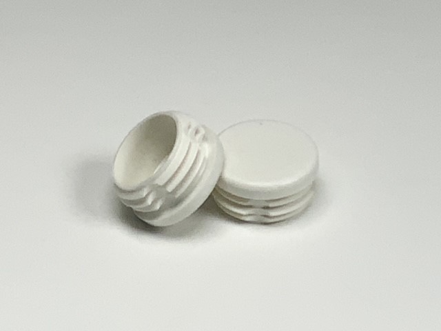 Metaalstore verkoopt witte kunststof ronde inslagdoppen in wit voor buisdiameter Ø25, Ø32 en Ø35 mm. Het deel dat uitsteekt (het zichtbare deel) is /- 5 mm dik. Het niet zichtbare deel, dat in de koker wordt geslagen, is tussen 11 en 14 mm lang.