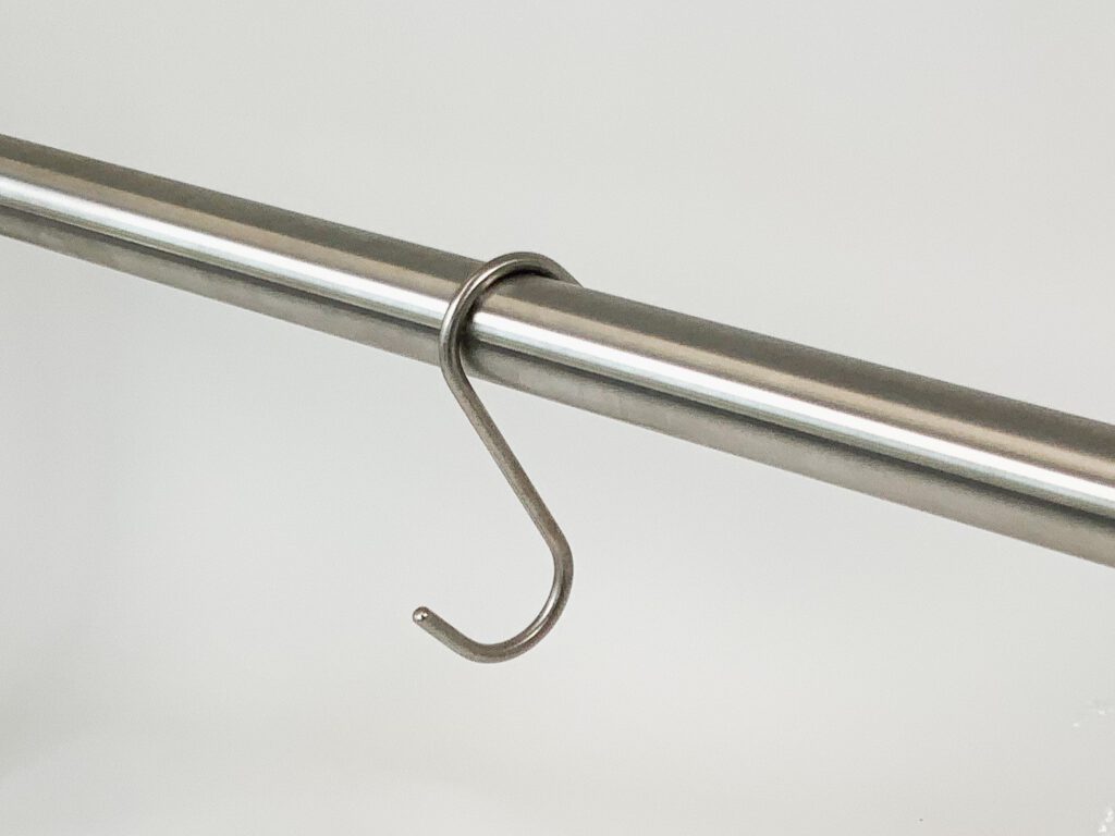 Metaalstore heeft een uitgebreid assortiment aan garderobestangen met bijbehorende accessoires. (Metaalstore – garderobe oplossingen) Een van deze accessoires is een S-Haak RVS-INOX groot model. De S-Haak is in eigen werkplaats gemaakt uit hoogwaardig RVS-INOX 304 en daarna met de hand professioneel afgewerkt. Wij verkopen deze S-Haak in een groot model en in een klein model.